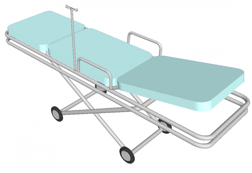 Stretcher plan detail dwg file. The 3d plan of a stretcher with detailing of metal rods, soft cushions for seating, etc,.