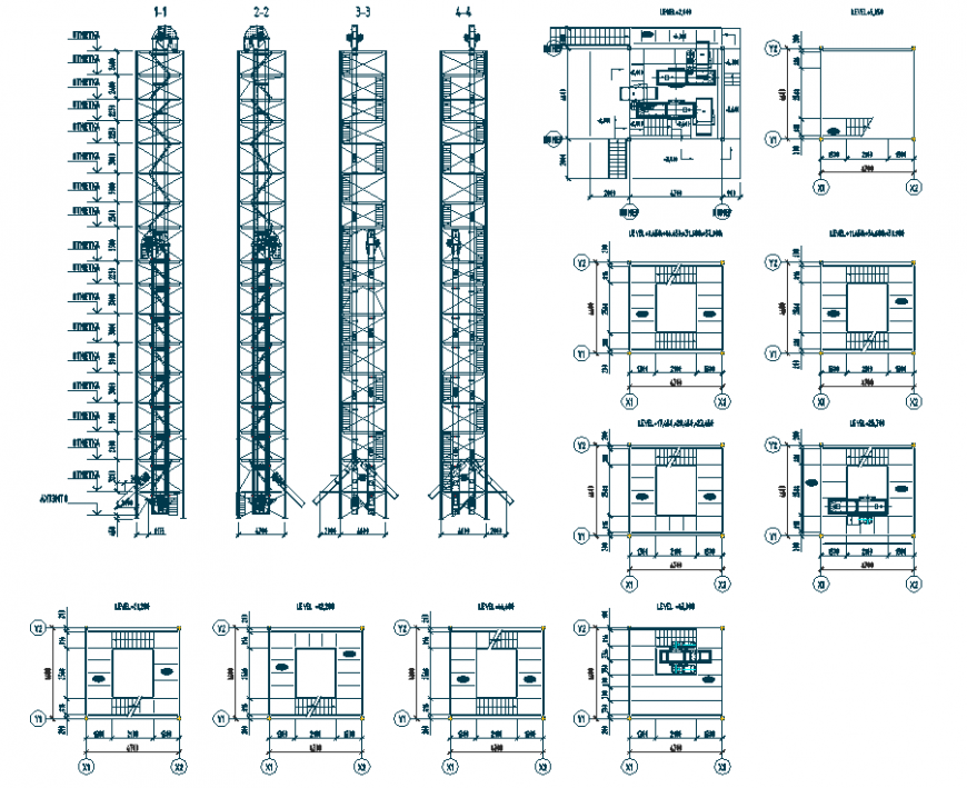The structure plan detail dwg file. The plan and elevation with detailing of metal rods, pillars, etc.,