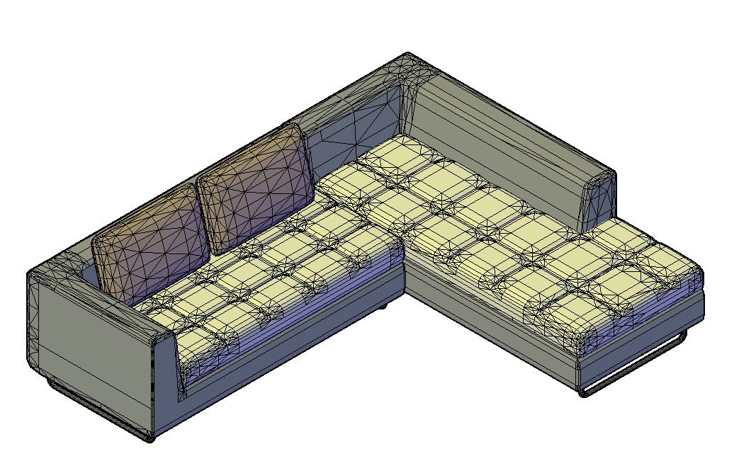 It is the square half cut type design sofa. Five sits and two big pillow in this sofa design. this all are look like in square. it's base created by wood.