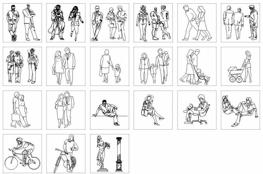People plan detail dwg file. The people with detailing of movement, physic, different clothing for different occasions, etc.