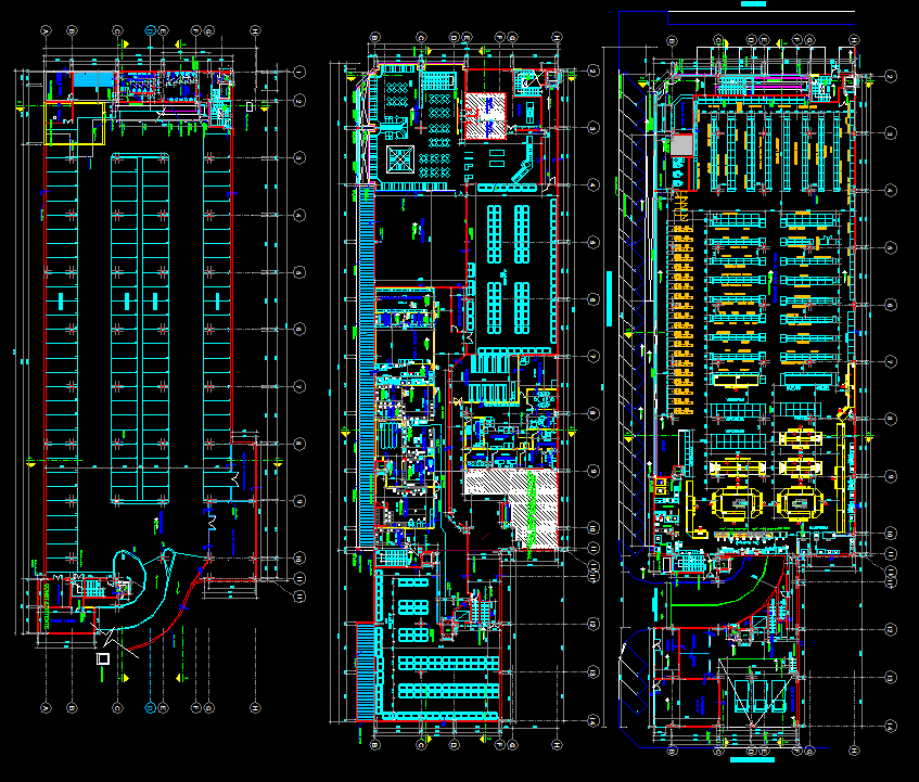 This supermarket AutoCAD DWG file presents a detailed 90x50m commercial layout design ideal for architects, builders, and retail space planners. The drawing features a well-structured floor plan, including shopping aisles, cashier areas, storage rooms, service corridors, and dedicated parking arrangements. Each element has been carefully designed to ensure smooth circulation and functional zoning across the layout.