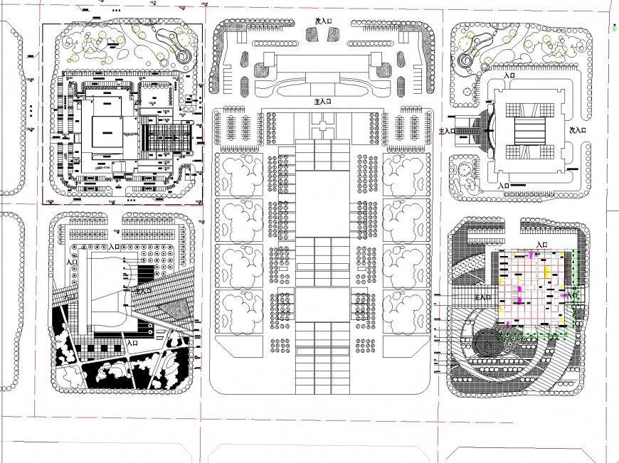 Commercial area developer plan autocad file, centre line plan detail, dimension detail, naming detail, landscaping detail in tree and plant detail, stair detail, hatching detail, north direction detail, leveling detail, car parking detail, etc.