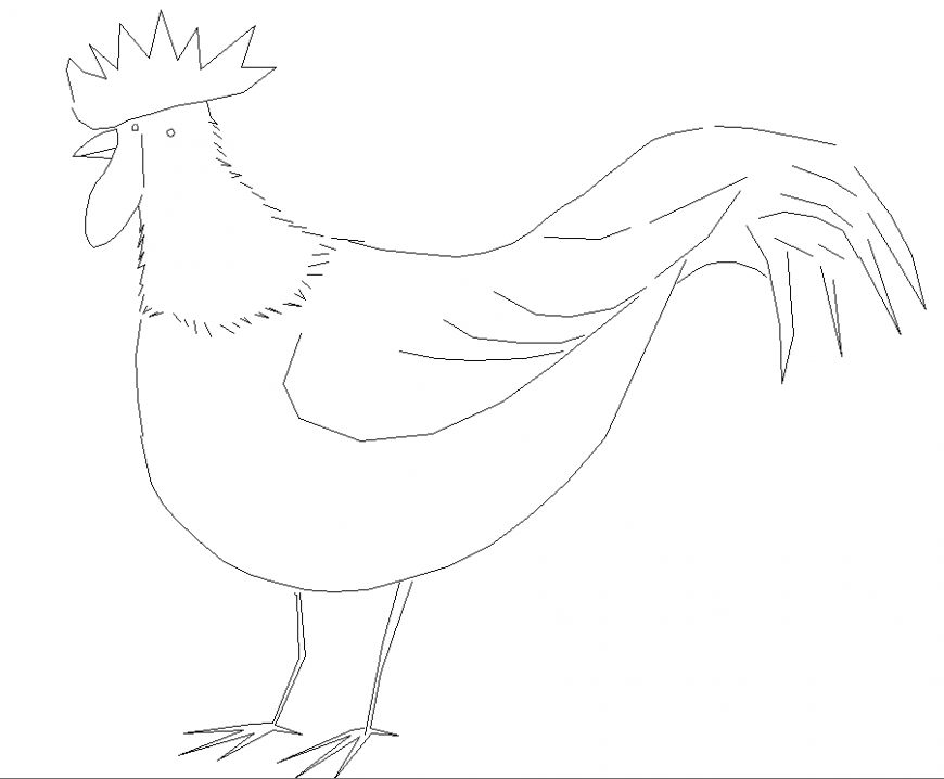 Hen plan detail dwg file. The side elevation of hen with detailing of wings, mouth, face, leg, standing hen with detailing, etc.,