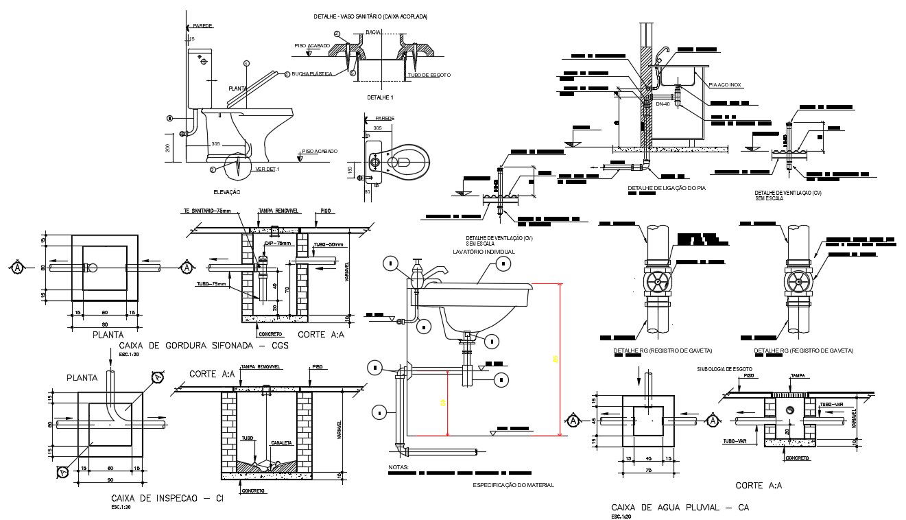 Sanitary detail. Sleeve plastic materials, Basin Sanitary, Sink Individual, etc detail include.
