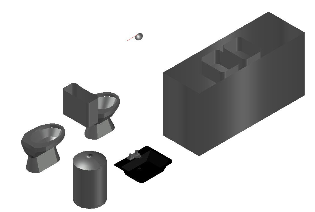 3D W.C Sanitary Block Detail of W.C 3 Side Elevation design include and solid ceramic materials use the made.