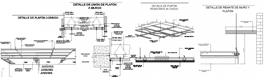 Suspended ceiling drawing in dwg file. detail drawing of Suspended ceiling ,3d view, installation details, joinery details, section details with descriptions and dimensions.