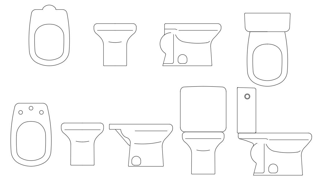 Toilet W.C All Side Elevation and Section and Plan Detail include with Diamension detail.