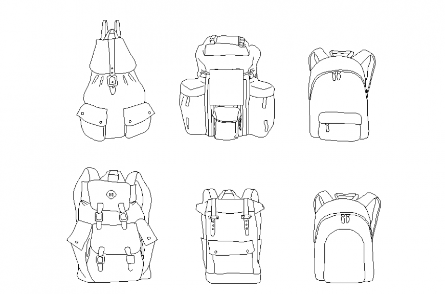 School & Collage Bag Block Detail, front side elevation Design draw in DWG file.Different type of Bag Design.