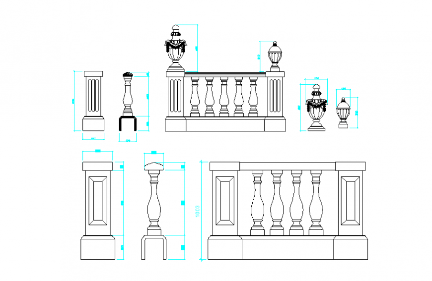 Baluster Elevation detail in DWG file, Front sid elevation design with dimension in drawing.