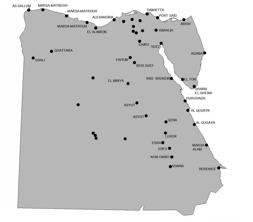 Egypt map plan dwg file, naming detail, point detail, grey colour detail, country detail, etc.
