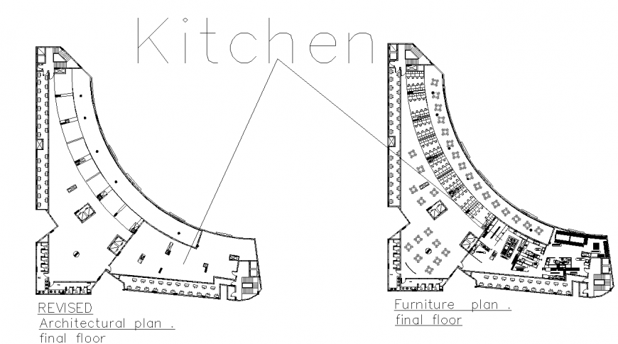 Kitchen plan with detail dwg file. The top view plan with detailing of kitchen cabinets, stove, lower storage, upper storages, drawers, etc., The plan with revised architectural plan and furniture plan, etc.,