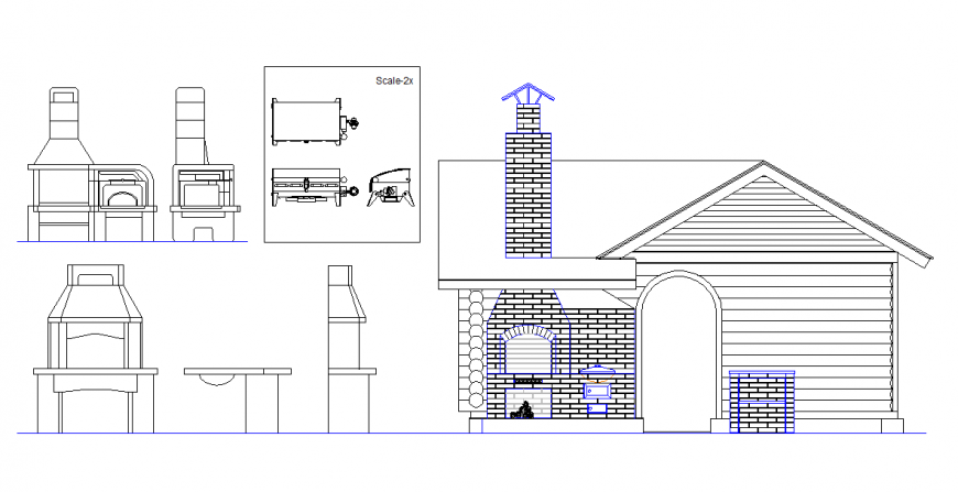 Barbecue House Detail in DWG file & Plan & Elevation & Section Detail & All dimension wise Drawing complate.