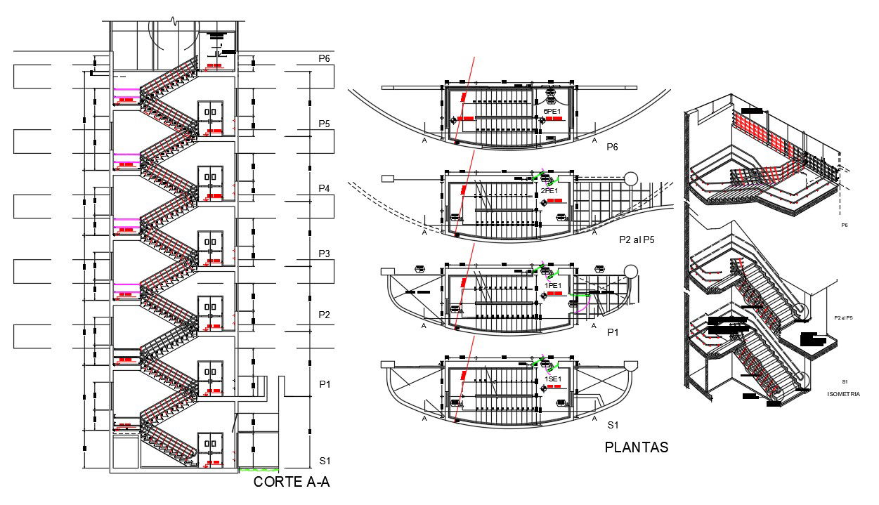 Stair Case Design DWG File; Structural detail of the armed ramps reinforced concrete stairs and breaks, steps and contrasts of 3.5mm. download Stair DWG File and get isometric drawing.