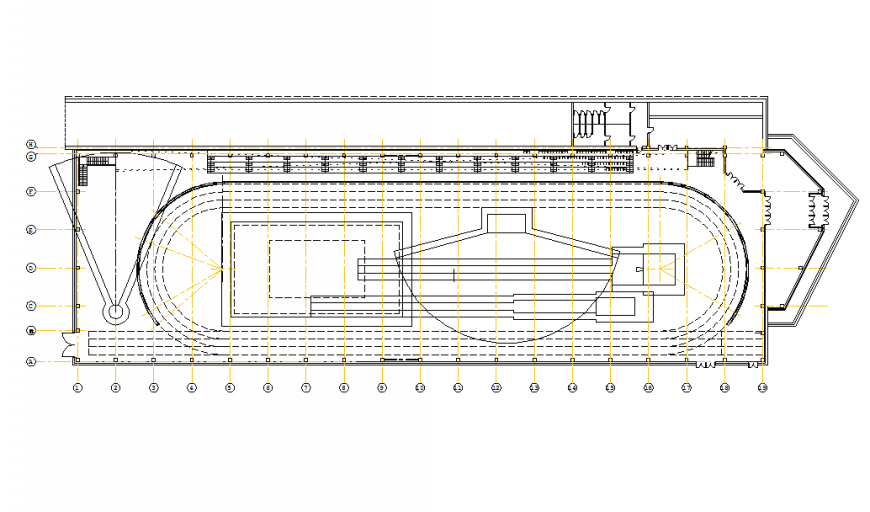 Athletics Arena Detail in DWG file, This Sport center Design draw in autocad & all detail like dimension & other detail.