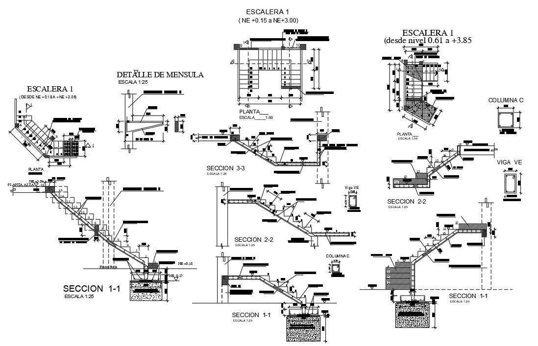 Staircase Isometric View DWG File; this Drawing show of Steel bar and Concrete materials and mortar. This Section cut of Structure detail see.