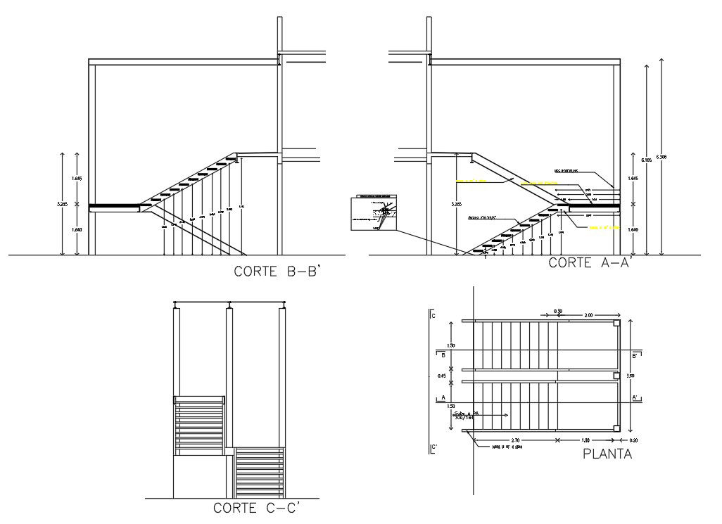 Stair Detail project DWG File; Stair Detail project detail of Section plan and elevation design with dimension detail. download free AutoCAD file of the staircase plan with dimension detail.
