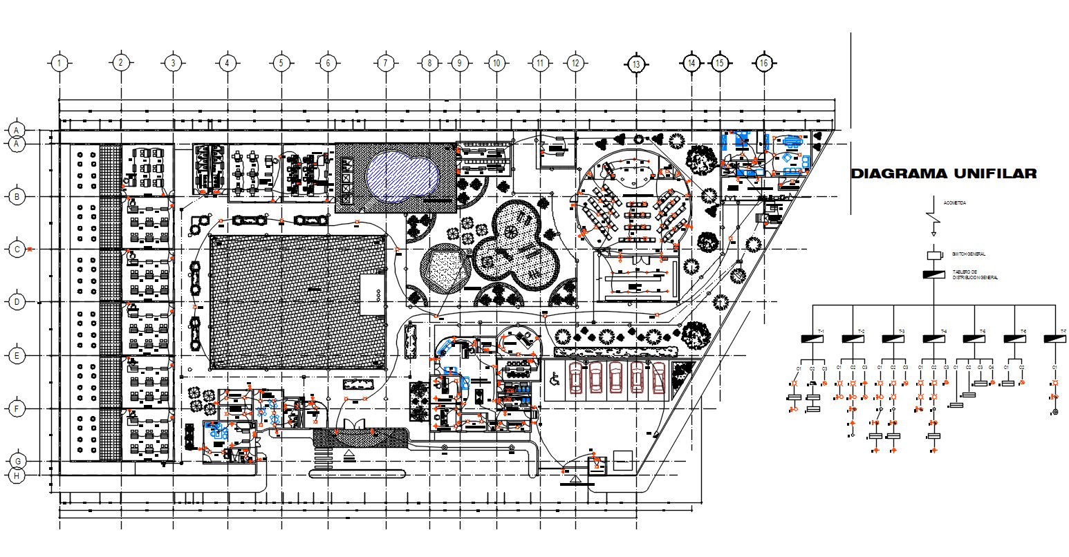 Children School Electrical Plan DWG File; 2d CAD drawing of electrical wire installation plan in children school project. download the AutoCAD file of children's school projects with furniture details.