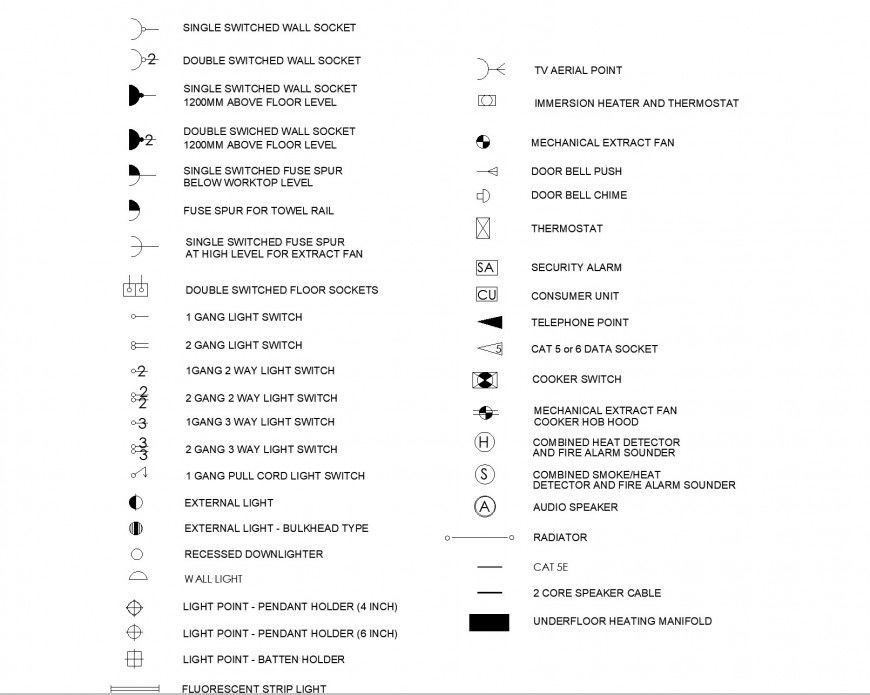 Single switched wall socket legend detail, legend detail, double switched wall shocked detail, single face detail, etc.