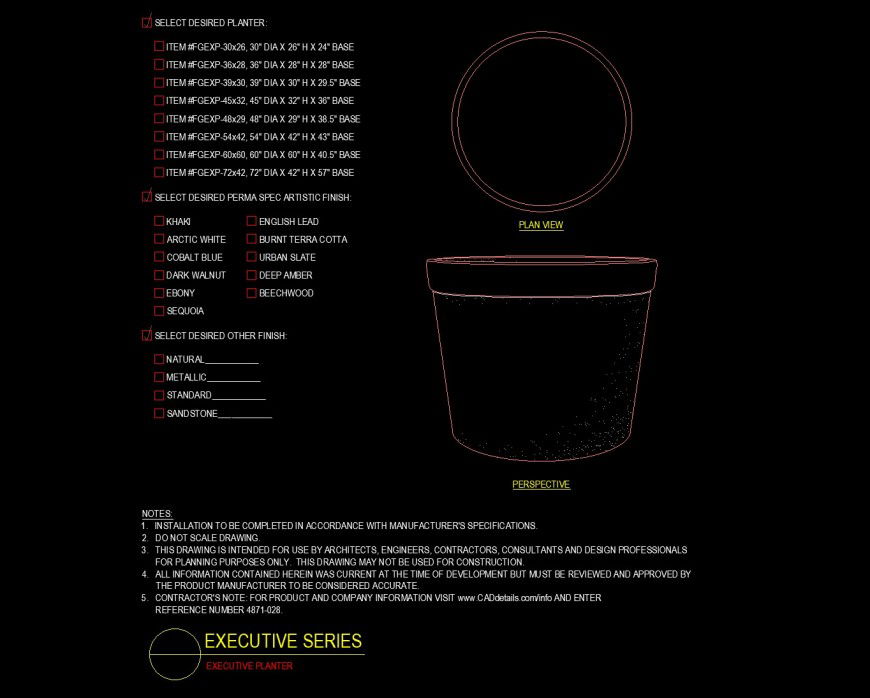 Executive planter drawing in dwg file. detail drawing of Executive planter with plan and perspective view, dimensions, desired frame finishes, and other details.