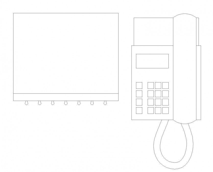 Tally phone elevation layout file, wire detail, top view detail, front elevation detail, screen numbering detail, key pad detail, white colour detail, etc.