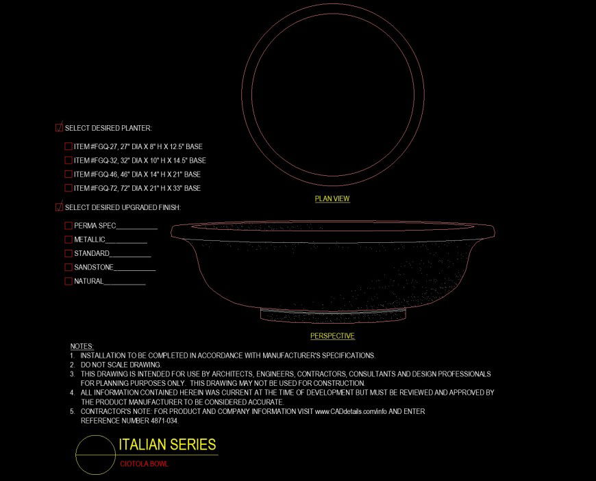 Ciotala bowl drawing in dwg file. detail drawing of Ciotala bowl drawing, with plan view, perspective drawing of ciotala designs.