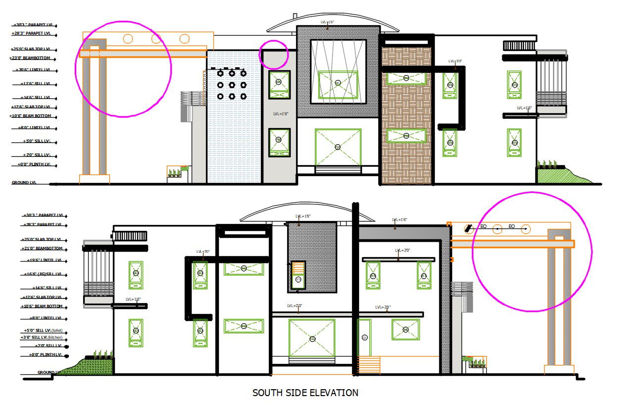 Bungalow Elevation Design DWG File