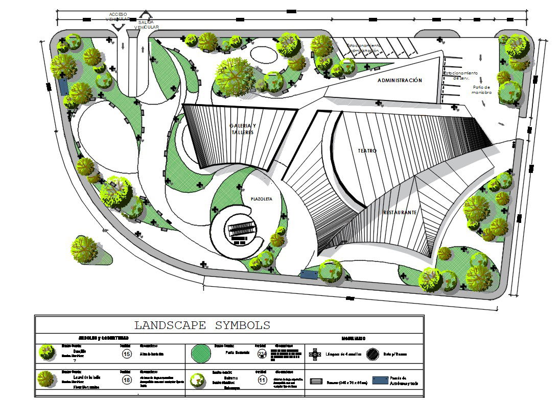 Garden Landscaping Design DWG File; 2d CAD drawing of garden landscaping design with tree and plant CAD blocks which improve the AutoCAD presentation.