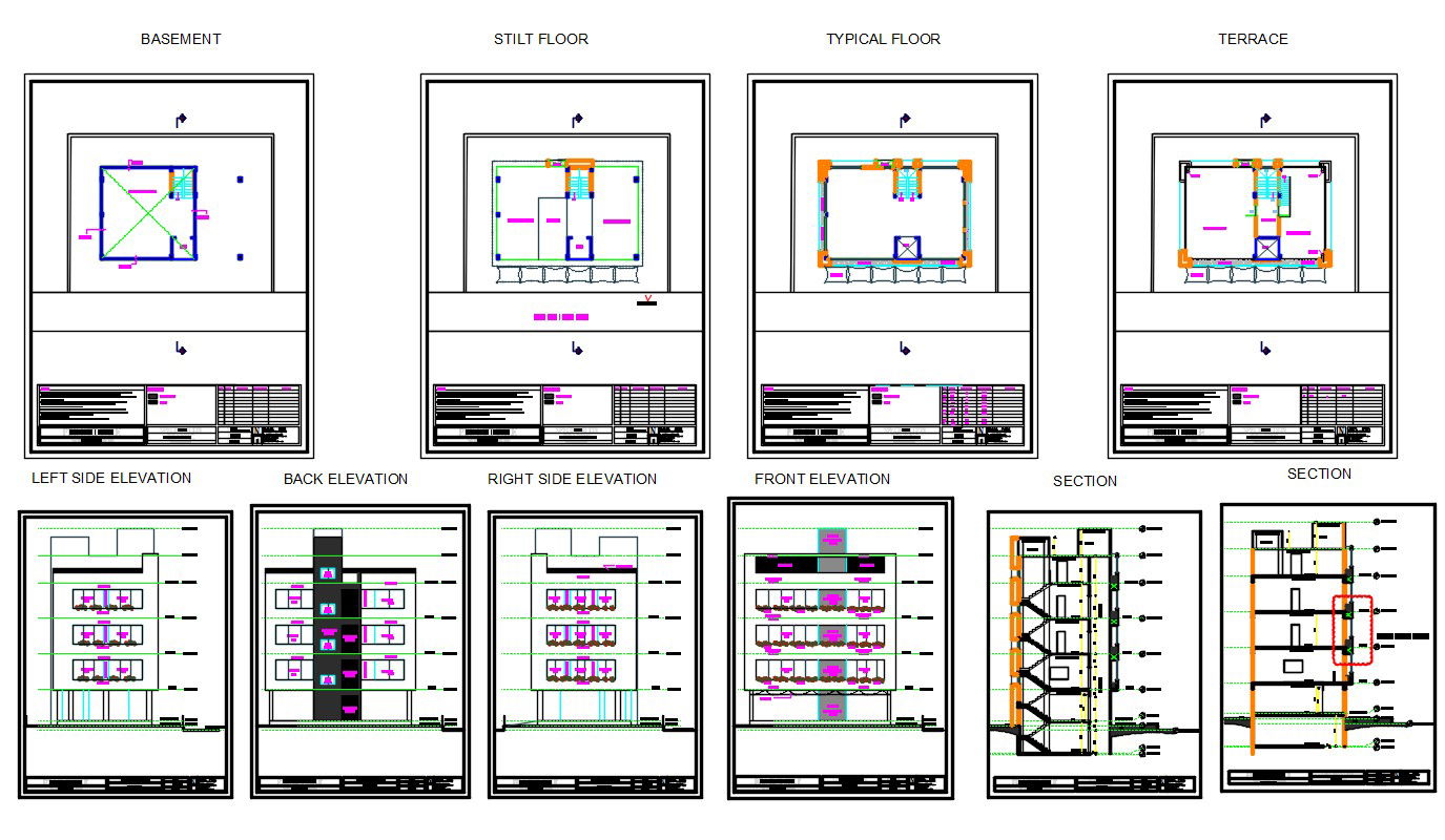 Apartment Plan DWG File; Apartment plan including a house details, layout plan, stair details, basement, Lift, car parking, and elevation design. download architecture apartment AutoCAD file with 4 storey floor building structure detail.