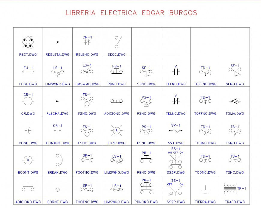 Library electrical symbol detail dwg file, rectangle drawing detail, point detail, electrical wire detail, circuit detail, breaking wire detail, switch detail, etc.