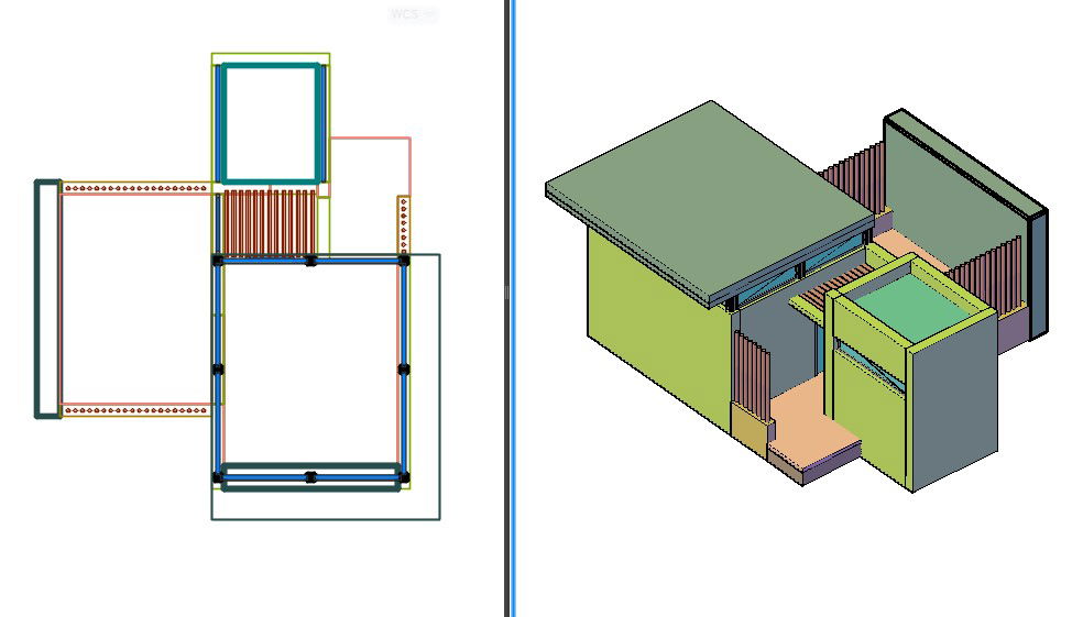 3D Guard House Design DWG File; download free 3d model of guardhouse plan with 2 different viewports.