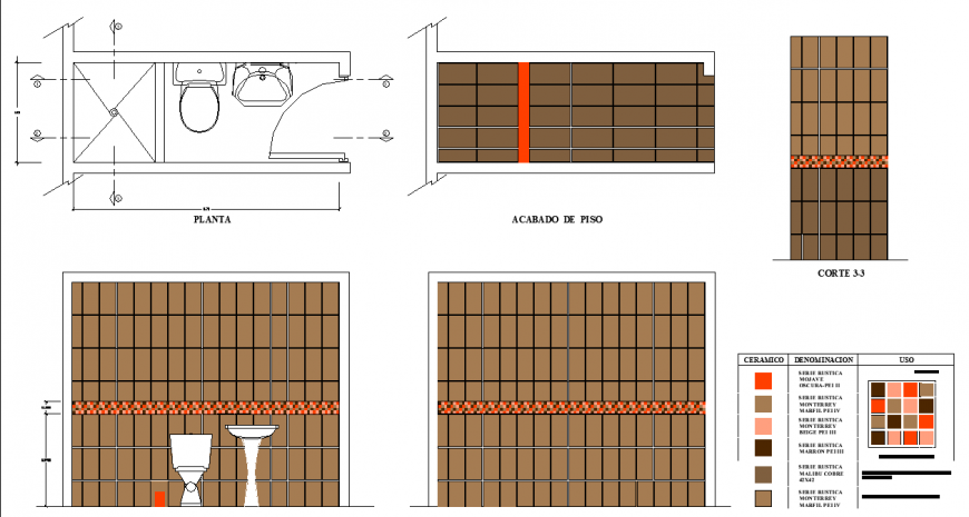 Bathroom plan detailing dwg file.