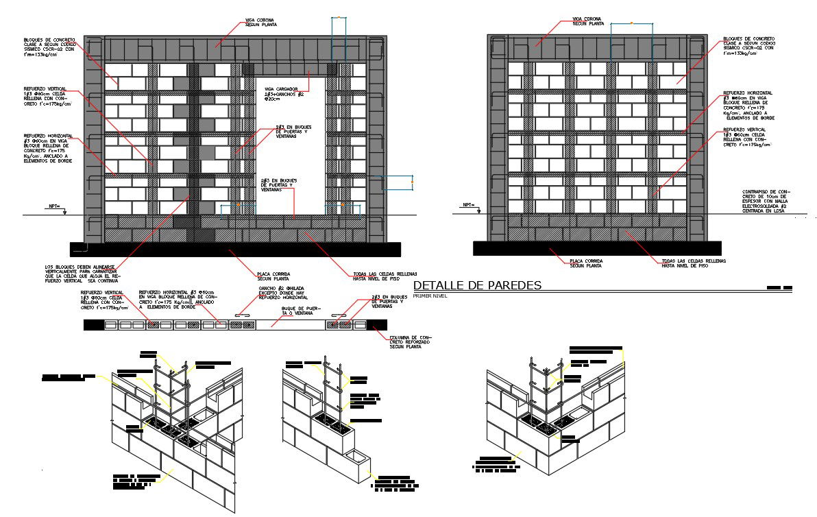 Concrete Wall Detail Design. All Stuffed Cells To floor, Beam detail, Horizontal Reinforcement 60cm in beam blocl design.Vertical