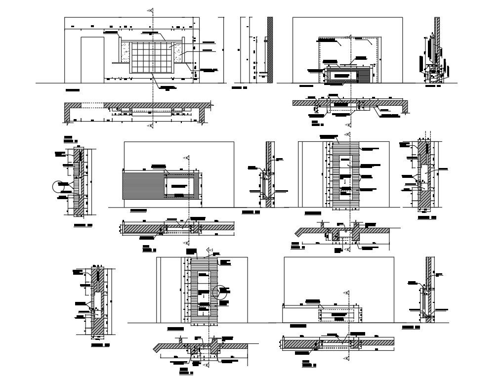 Wall Structure detail in a wooden details , section plan, foundation details, surface in wall paper finish, rope light,