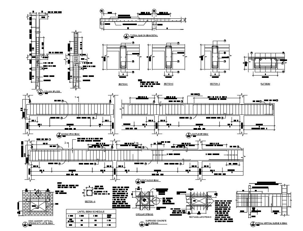 Beam details providing a whichever is greater , bottom bars, stirrups breadth, column reinf , discontinuous edge, interrupted bars , rectangular opening .