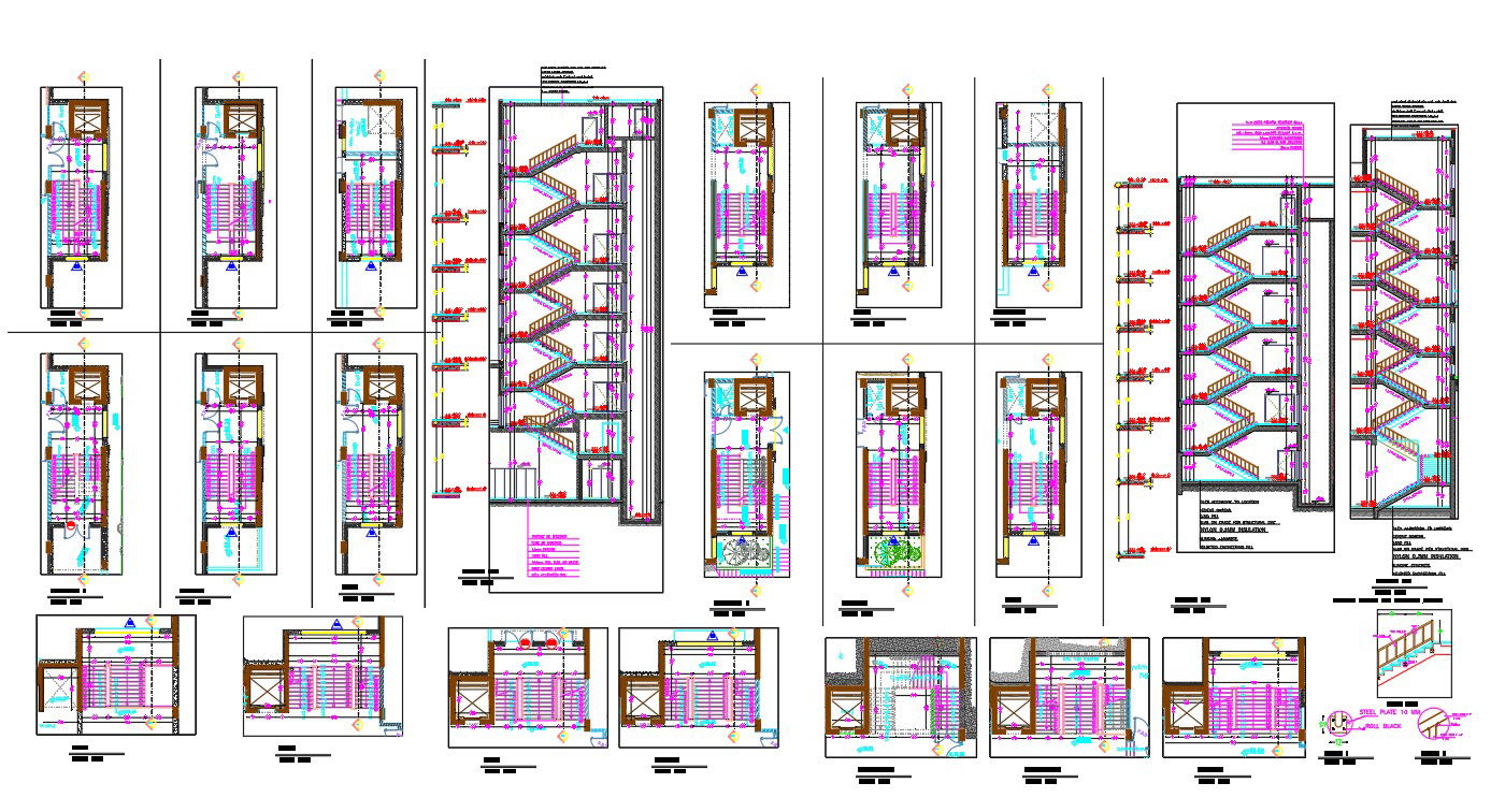 Stairway details in a section plan, foundation details, cement mortar, sand fill, slab grade per structure details ,