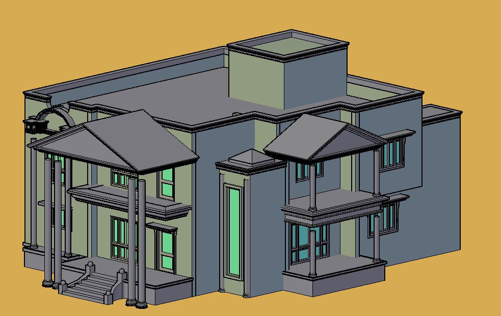 3D modern House details in a elevation details , front side elevation , back side elevation , right and left side elevation, window and door design , column details .