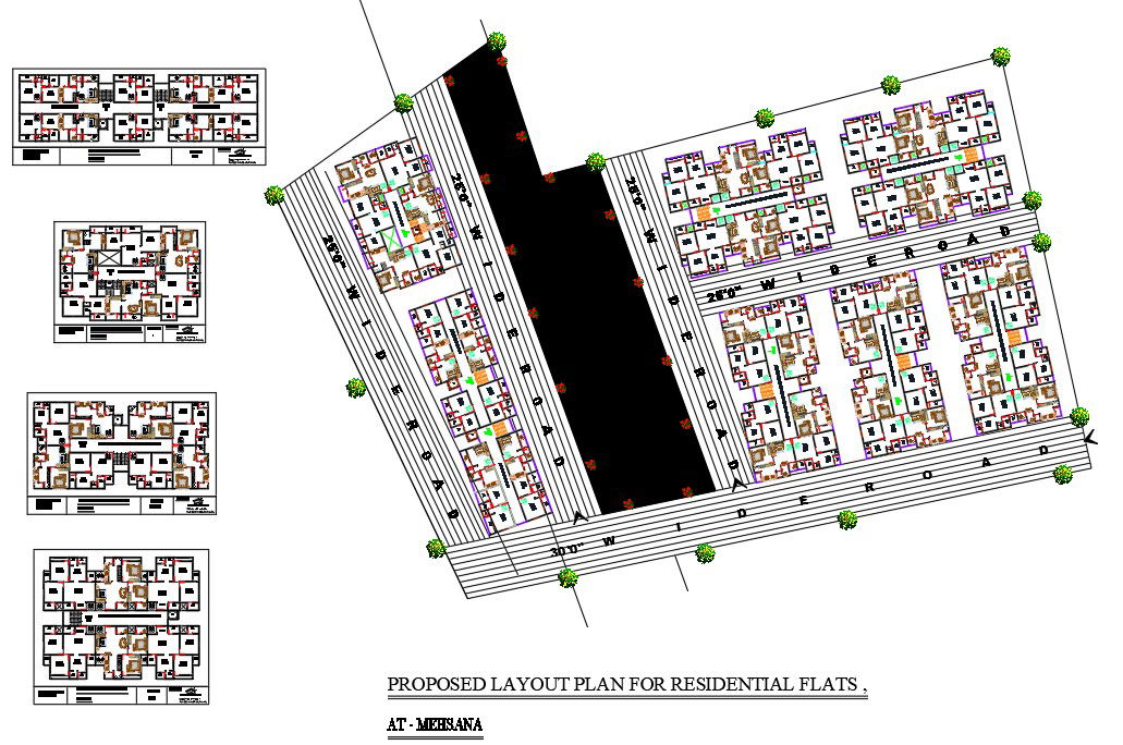 Society planning details in a common plot, play ground , house layout plan details in a kitchen, bedroom, dining