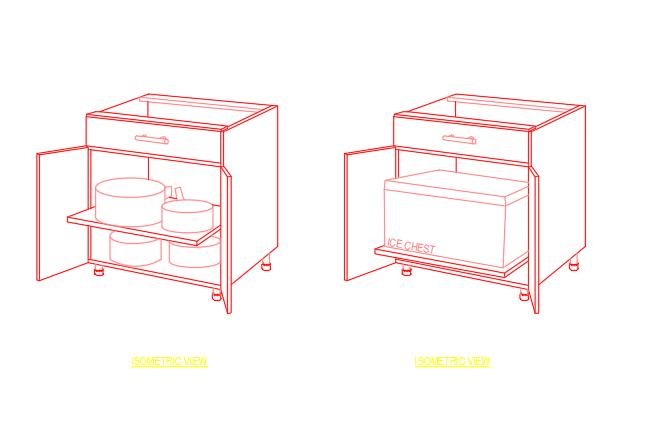 This AutoCAD DWG file provides a detailed pull-out shelf design, including front and isometric views, precise dimensions, and specifications. Ideal for interior designers and kitchen architects, this CAD block helps integrate pull-out shelves into cabinetry for better accessibility and organization. Fully compatible with AutoCAD, the file allows easy editing and adaptation, ensuring precise implementation in residential and commercial kitchen layouts.