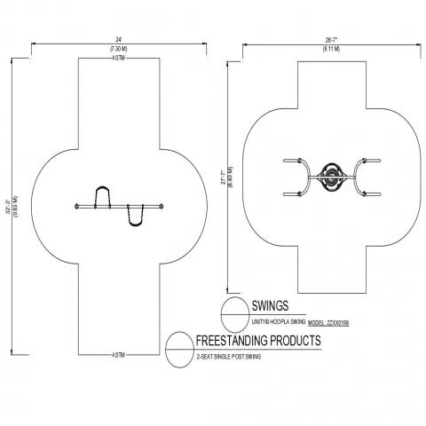 Two Seat Single Post Swing DWG Plan for Playground CAD Design