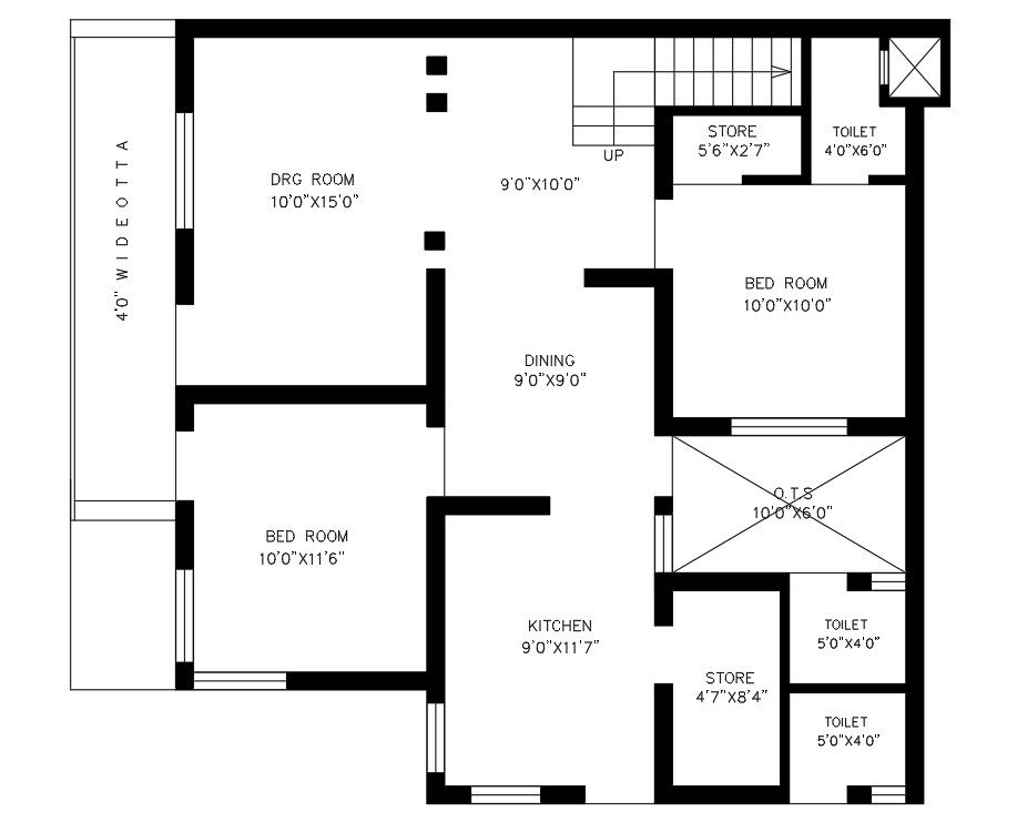 Layout home details including in a kitchen, bedroom, bathroom, toilet , dining room, store room, stair details .