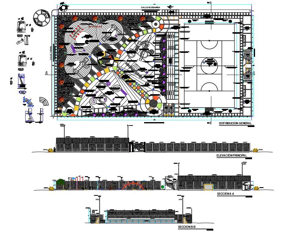 Play Ground Design detail. A playground, playpark, or play area is a place with a specific design to allow children to play there.
