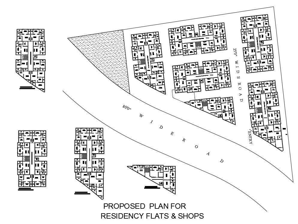 Apartment House Lay-out details in a house layout details kitchen, bedroom, drawing room, parking area, stair an d lift details .