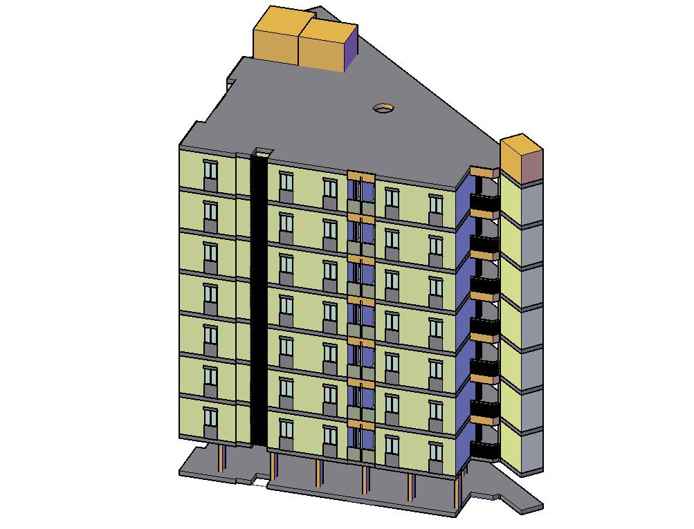 3D Apartment details in a left side and right side elevation , parking area, stair details ,balcony, window details , This file draw in autocad format.