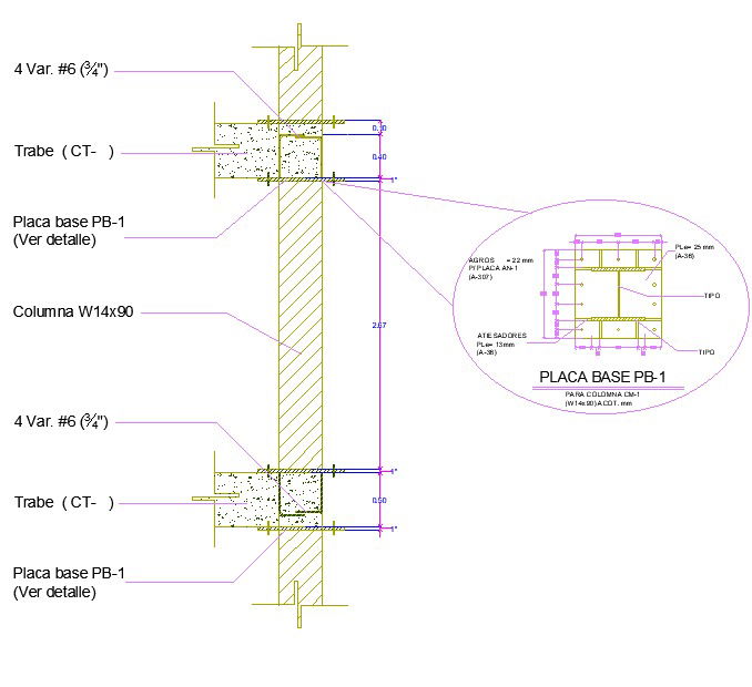Column Base Plate Section Plan CAD Drawing in DWG File Format