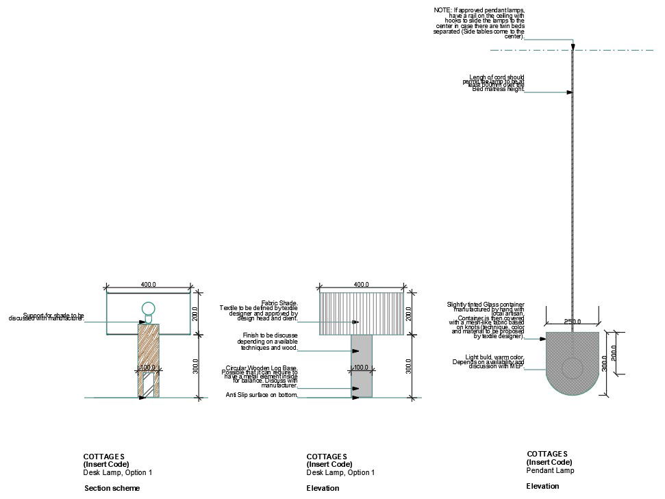 electric lamp details section plan, elevation details , Support for shade to be discussed with manufacturer, Finish