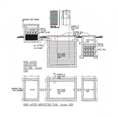 Rainwater Harvesting Plan DWG File with Section and Tank Details