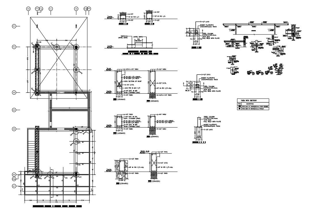 Ground floor Structure details in a steel beam details, foundation details , insert plate , section roof plan, steel