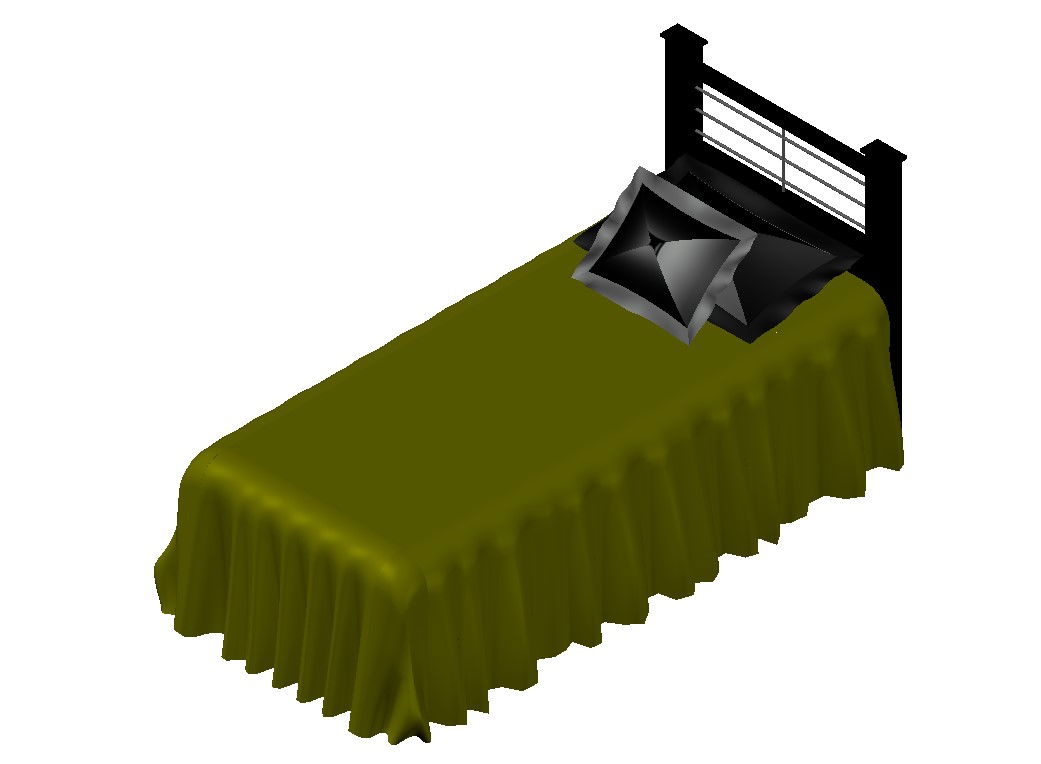 3D single bed details providing a front elevation , beck elevation , This file draw in autocad format.