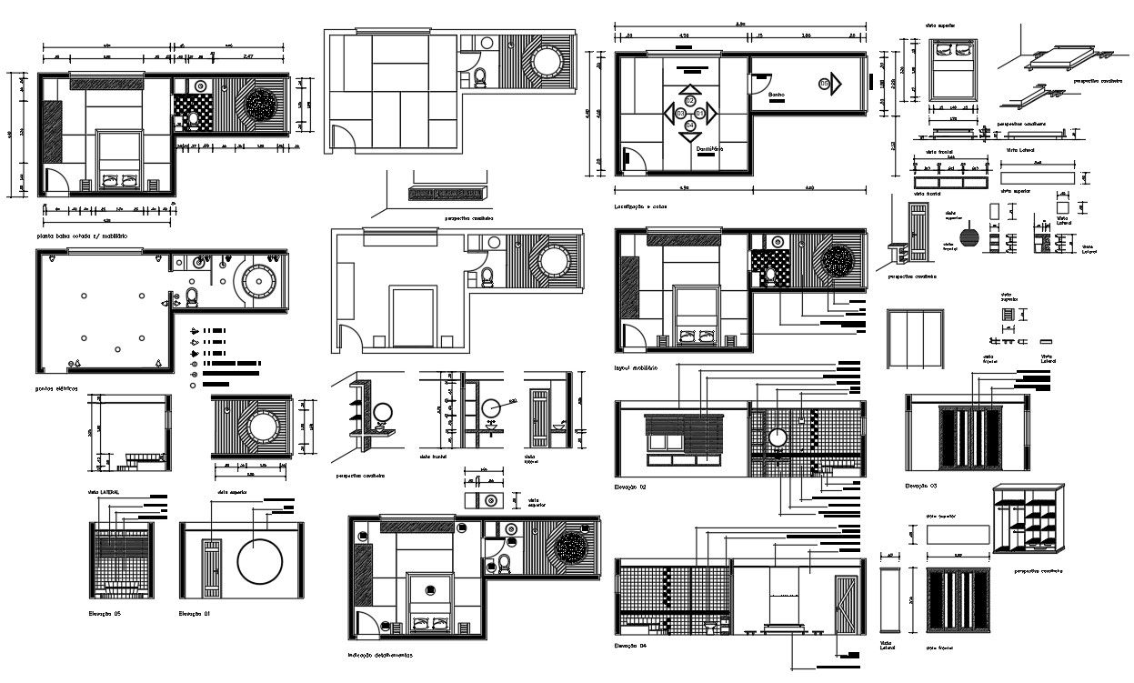 nightstand Japanese style, detailing indication, electrical points.