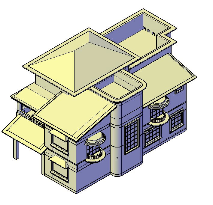 3D View Detached House Design DWG File for Architectural Projects